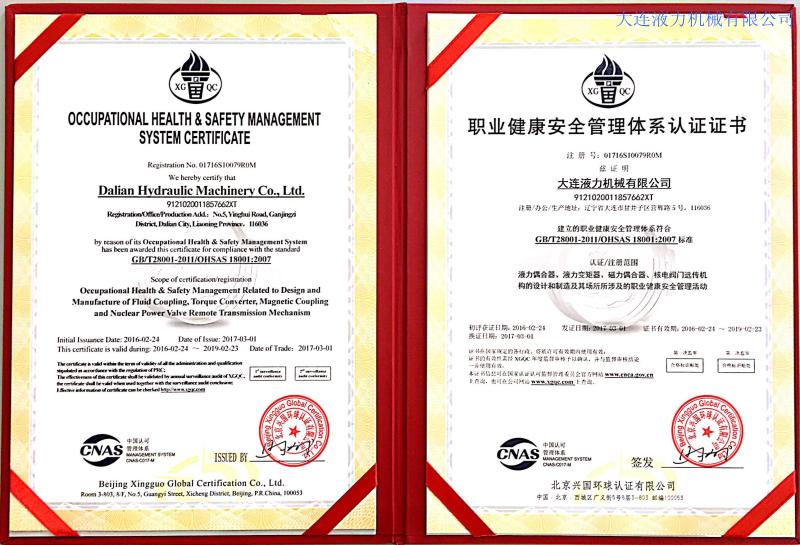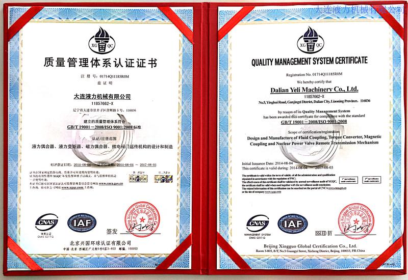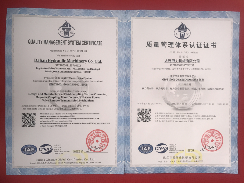 大連液力機械有限公司曾多次被評為省、市級先進企業(yè)、文明單位;遼寧省“用戶滿意企業(yè)”、曾獲“遼寧五一獎狀”,企業(yè)信譽良好,產(chǎn)品品牌廣為認可。公司建立了完善的研制開發(fā)和質(zhì)量保證體系,在國內(nèi)液力行業(yè)較早通過ISO9001質(zhì)量體系認證和包括職業(yè)健康、安全、環(huán)境三體系認證,2015年又通過了國軍標(biāo)質(zhì)量體系認證。企業(yè)連續(xù)二十余年被省、市工商局評為“重合同、守信用”單位,二〇〇二年獲國家統(tǒng)計局“遼寧省信譽優(yōu)秀企業(yè)”,連續(xù)多年被評為“AAA”級信用企業(yè),公司主導(dǎo)產(chǎn)品連續(xù)多年獲遼寧省和大連市名牌產(chǎn)品,2008年至今是大連市高新技術(shù)企業(yè)認證企業(yè)。